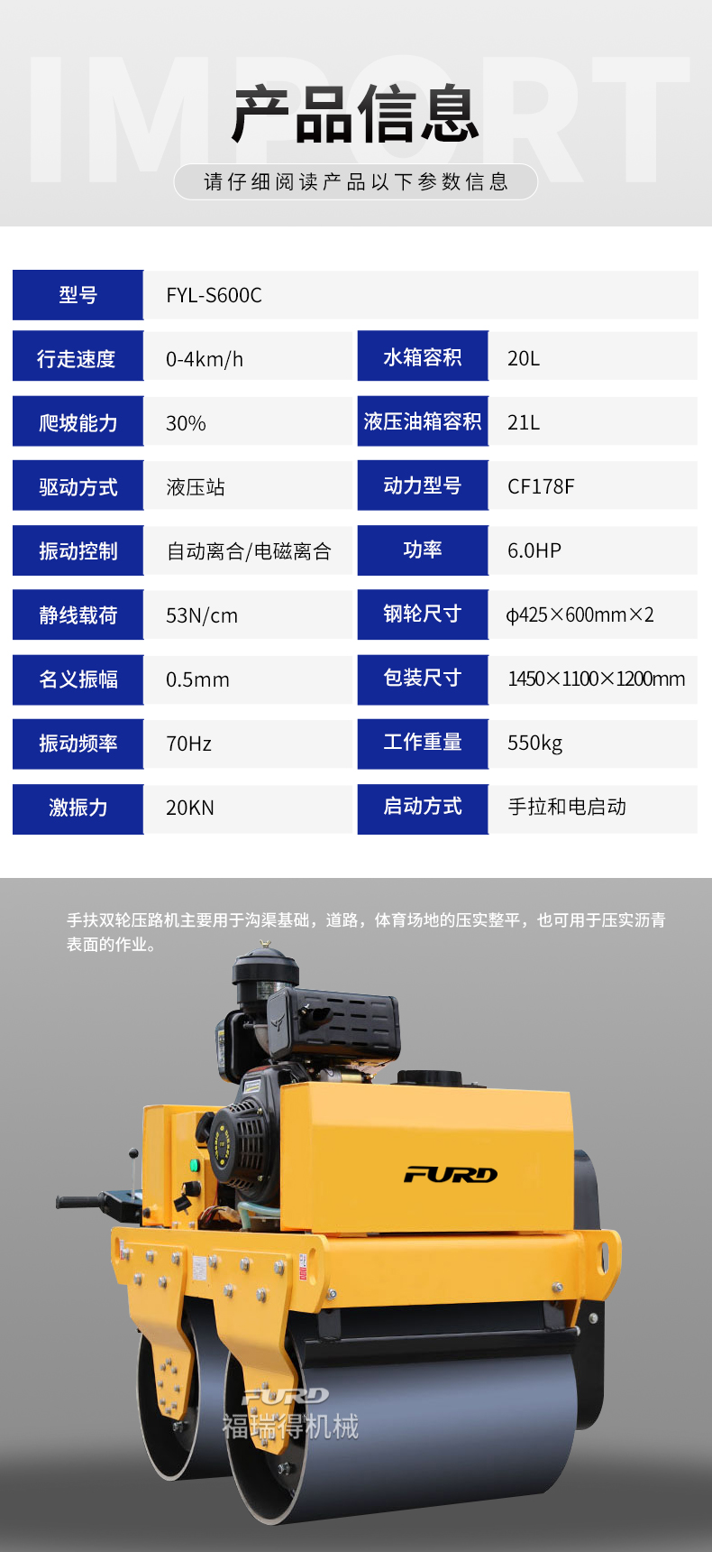 FYL-S600C手扶雙輪壓路機(jī)